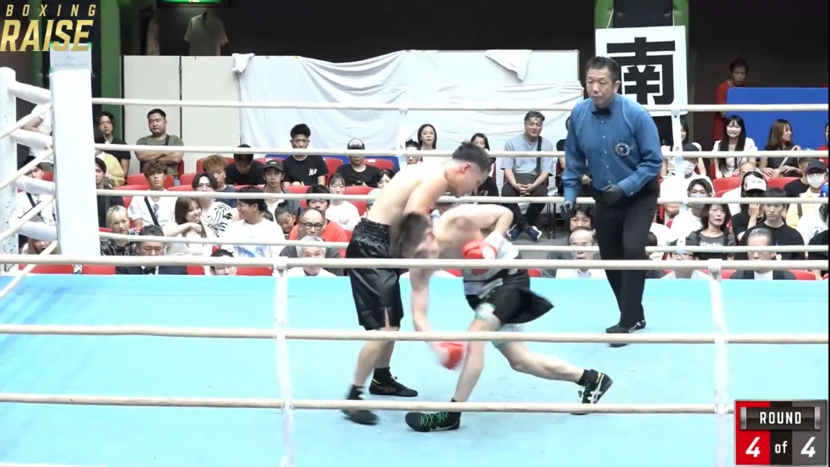 3Rは逆に左フックで再び流れを引き寄せるが、4Rも激しい打ち合いでどっちが勝ってもおかしくない内容でした。