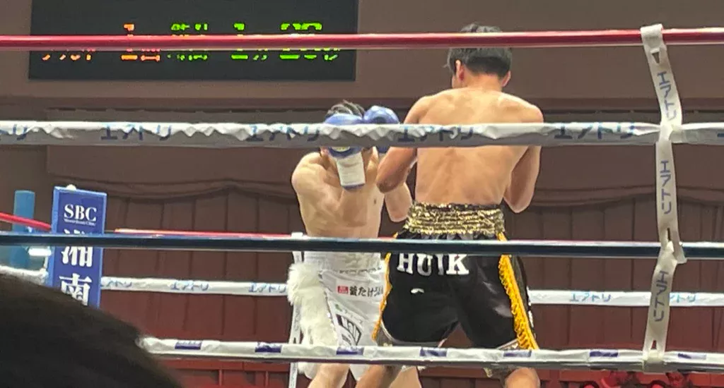 スピードある動きで終始試合をコントロールして2Rに右ボディで10カウント。
