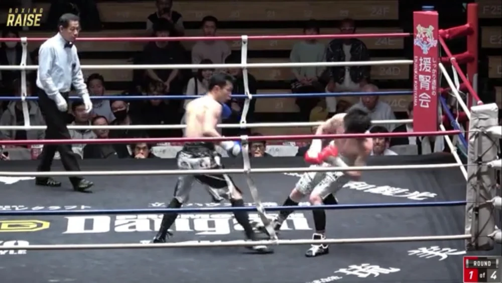 3R序盤も八谷選手のノーモーションの左や飛び込む左、そこからの返しのフックがヒットしていましたが、阿部選手が巻き返してペースを戻して逆転。