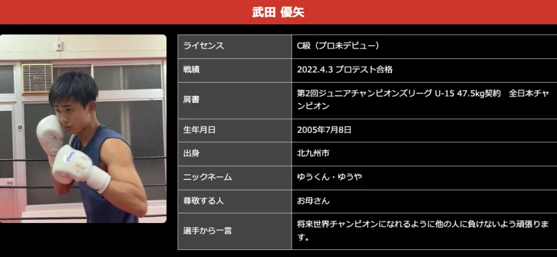 まだプロ未デビューでピチピチの17歳ですが、デビュー戦の相手はプロ2戦1勝1敗、アマチュアで16戦の経験がある藤澤孟則選手。