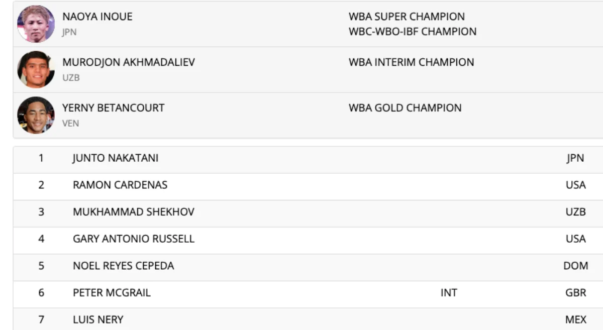バンタム級は井上尚弥選手が統一王者を返上後は中谷潤人・武居由樹・堤聖也・西田凌佑・井上拓真と、多くの日本人ボクサーで世界のベルトを奪い合う時代へ。