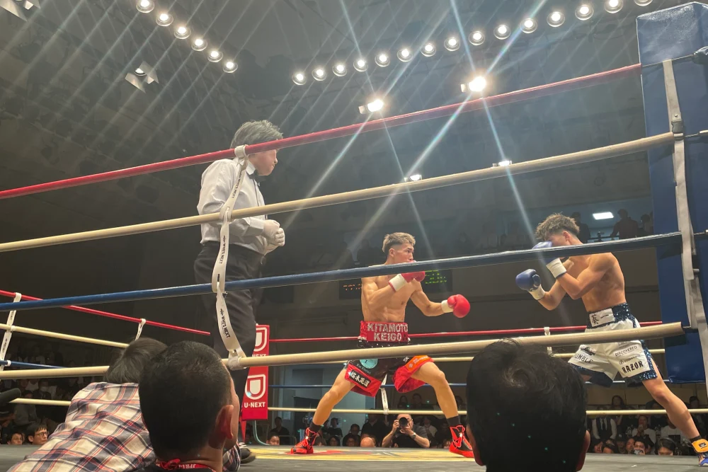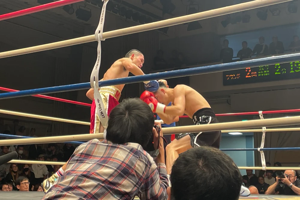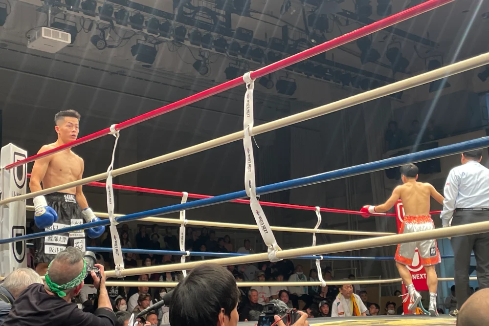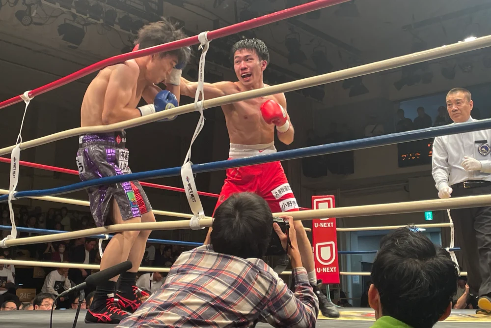 小野寺選手は左に加えて右フック強打も怖く、何発か梶野選手ももらっていたが全体を通したら梶野選手の土俵。