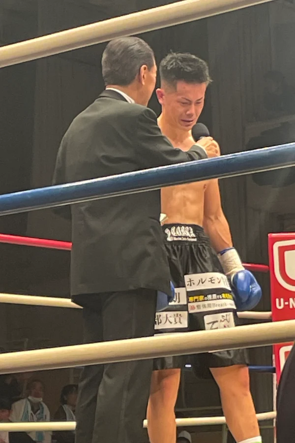 試合中は小野寺選手の左ストレート右フックも梶野選手にヒットしているように見えましたが、試合後の梶野選手は綺麗な顔をしていました。