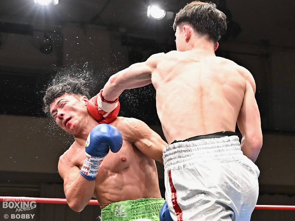 花形ジムの諸戸明来選手は叩き上げボクサーながらデビュー戦で落合昭斗選手に逆転TKO勝利。