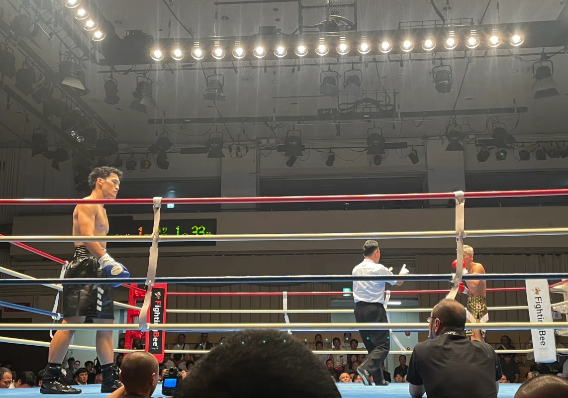 この試合、序盤からポイントはリードされていましたが、途中採点が出るまで自分の中では藤田炎村選手がリードしているのではないかと錯覚するほどにリングサイドに響くパンチ音は迫力がありました。
