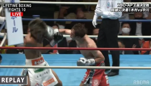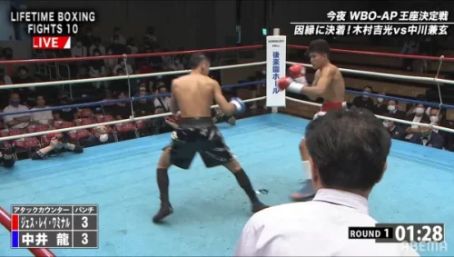 3R目、中井選手外の取り方上手いなぁ。常にパンチを貰わない位置を取りながらジャブを当てて左に繋げる。
