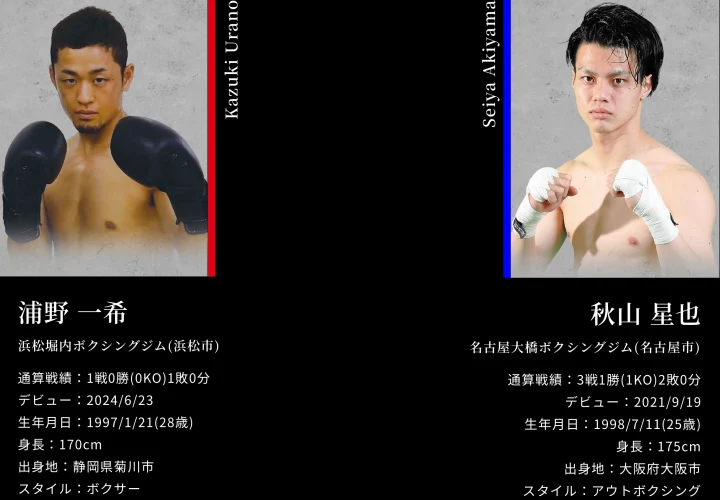 ライト級4回戦 浦野一希(浜松堀内) VS 秋山星也(名古屋大橋)