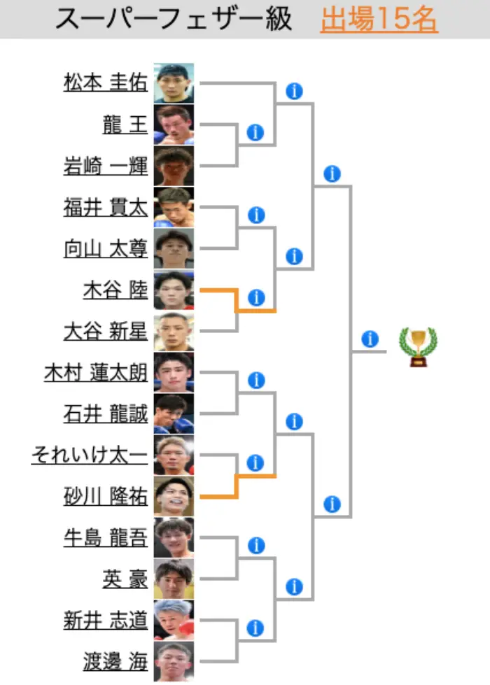 砂川選手は奈良井選手へのタイトル挑戦を控えており、そちらの結果次第でトーナメント出場はどうなるのだろうか。