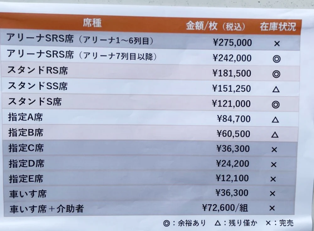 9.3有明アリーナはチケット価格が100円単位、席によっては10円単位まで細かかった。