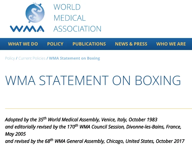 世界各国の医師会が加盟する非政府組織である世界医師会(WMA)はボクシングに対する声明を以下のように発表しています。