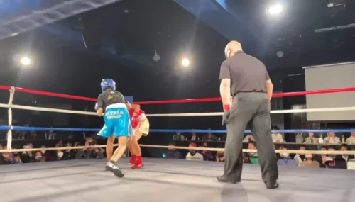 こうした非公式なスパーリング形式の試合の場合、ヘッドギアは大半各自の持参です。